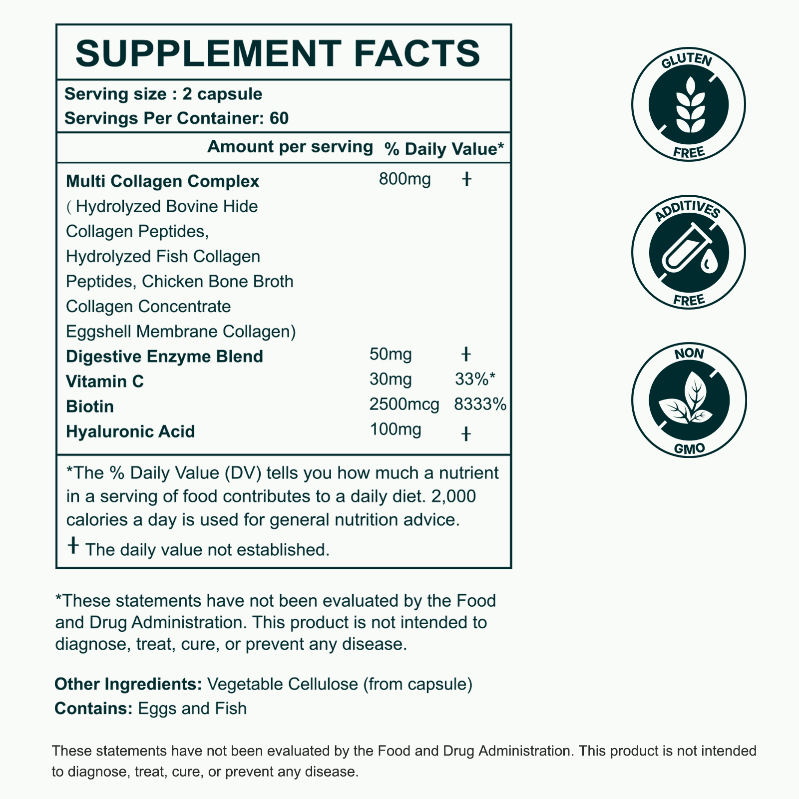To help your body actually use what’s in the capsule, Multi Collagen Complex Plus adds a targeted digestive enzyme blend for absorption support. Take it daily as your convenient collagen peptides routine to back up skin, hair, nails, joints, and gut comfort in one simple step.