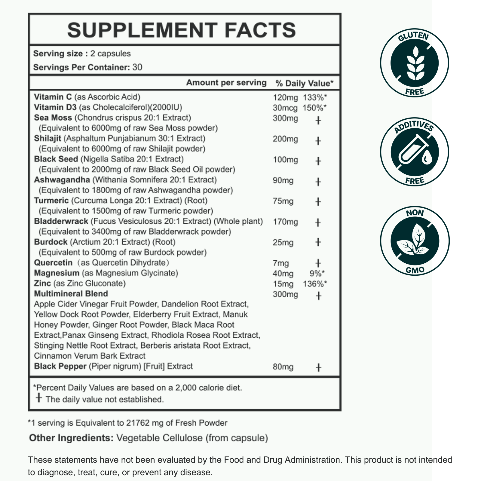 At the core is Shilajit, long used as an anti-aging Shilajit Brain health supplement that Shilajit Boosts Energy & Fights Fatigue, Shilajit Supports Brain Health and works as a Shilajit male vitality booster, while sea moss and bladderwrack supply mineral-rich baseline support for thyroid, skin and connective tissue. Turmeric, black seed, quercetin, magnesium, zinc and a Multimineral Blend layer on Shilajit Powerful Immune & Joint Support plus antioxidant protection for whole-body resilience.